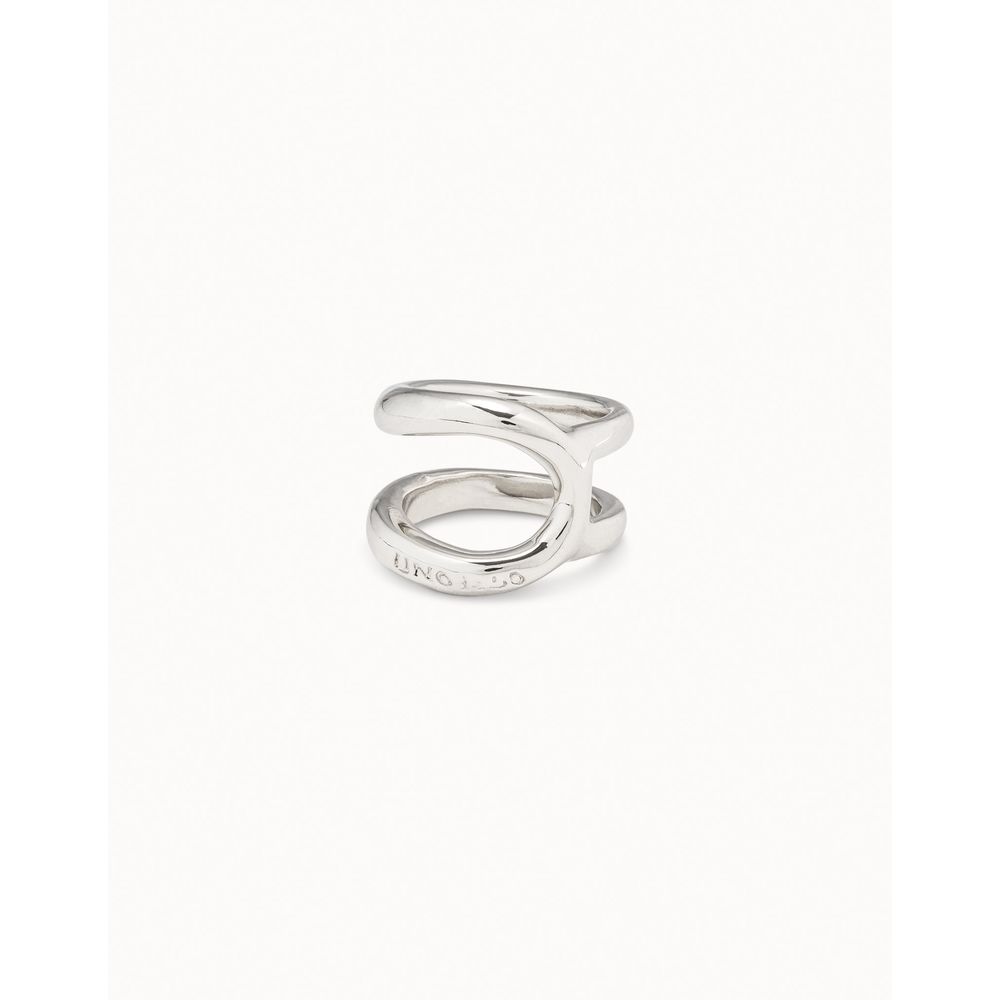 Anillo bañados en plata de ley con dos cristales azules enfrentados