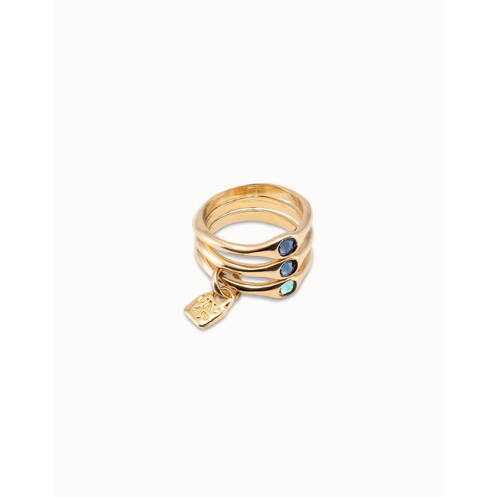 Anillo triple bañado en oro de 18k con cristales azules