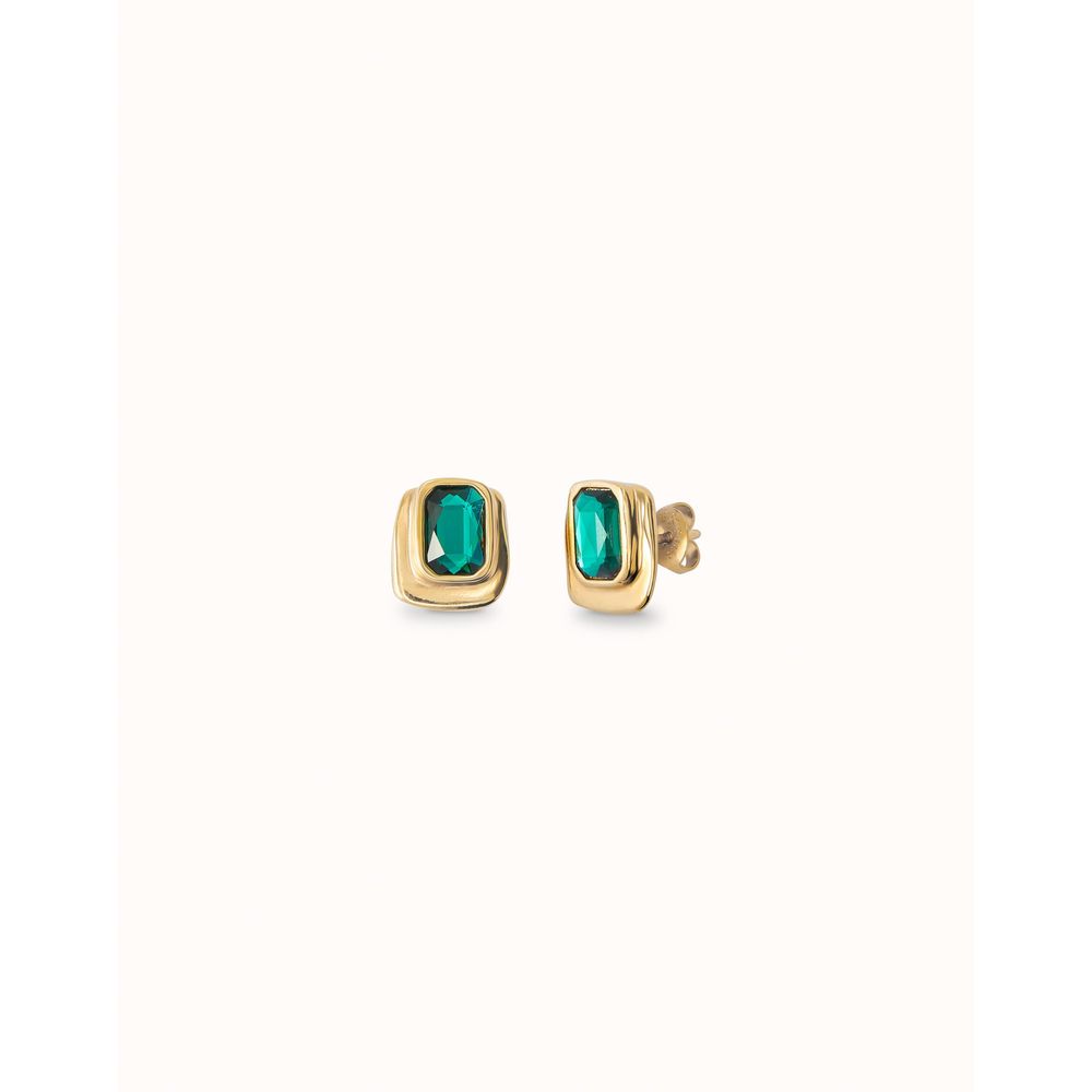 Aros rectangulares bañados en oro de 18k con cristal verde