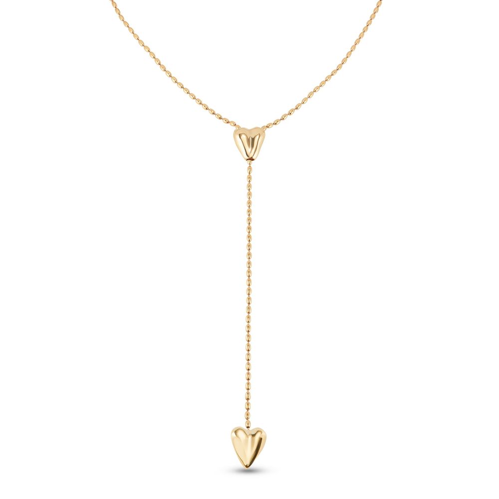 Cadena bañada en oro 18k con dos corazones, uno ajustable en el centro.