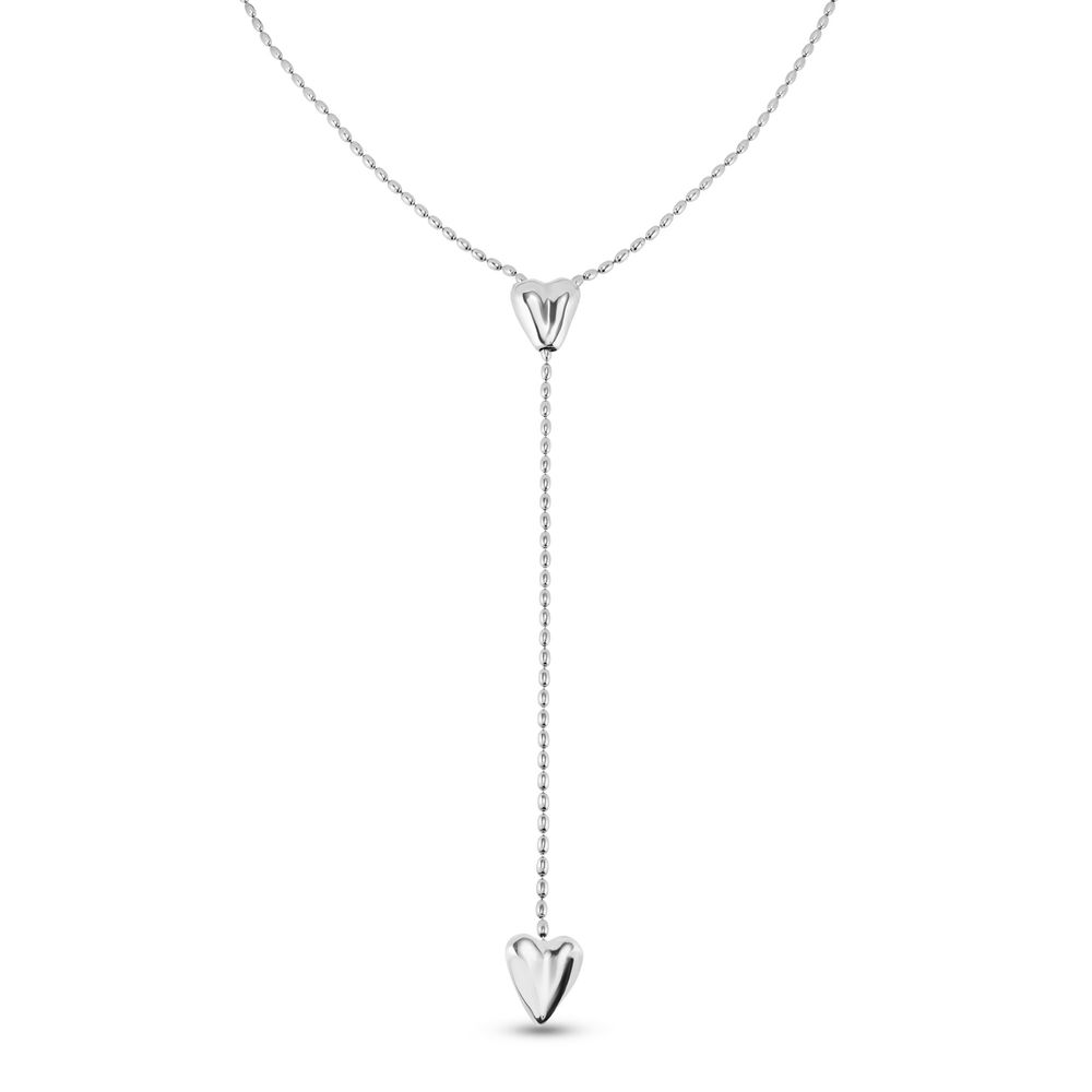 Cadena bañada en plata de ley con dos corazones, uno ajustable en el centro.