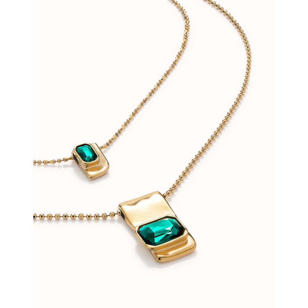 Colgante bañado en oro 18k con doble cadena y triángulo de cristal