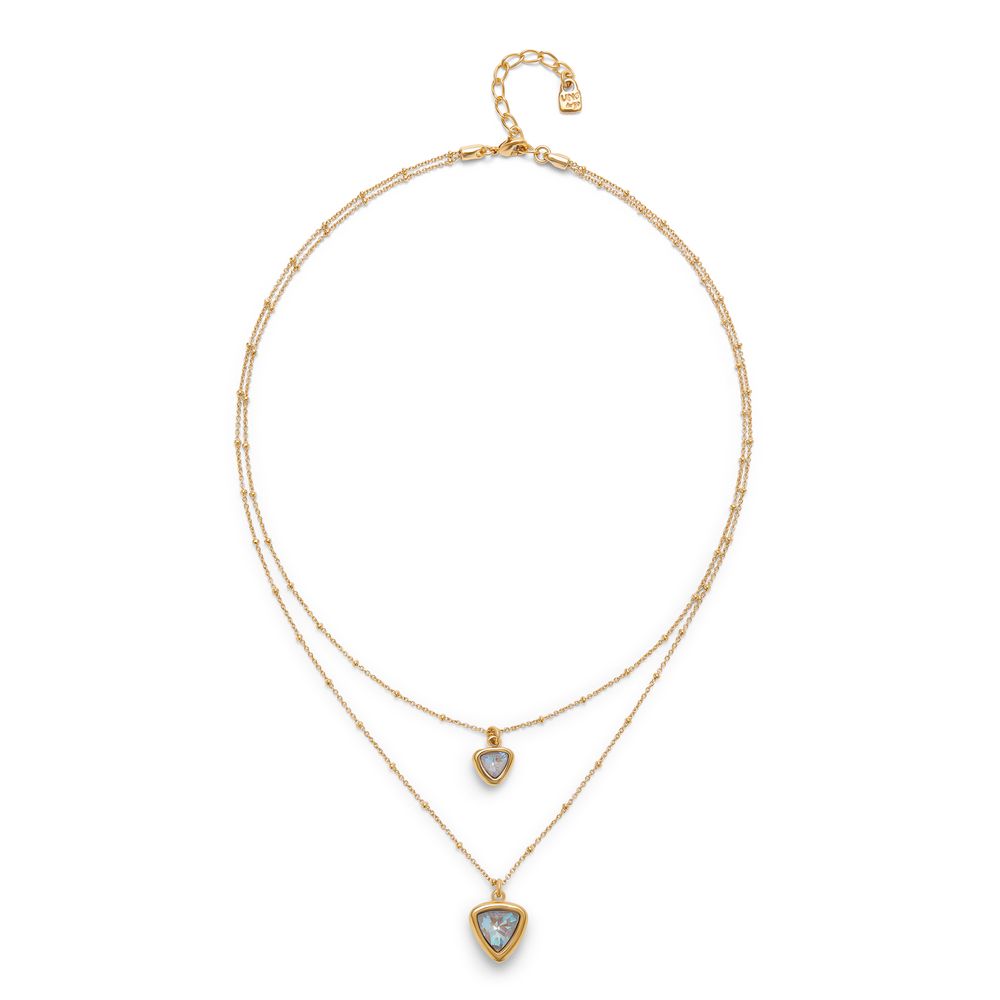 Colgante bañado en oro 18k con doble cadena y triángulo de cristal