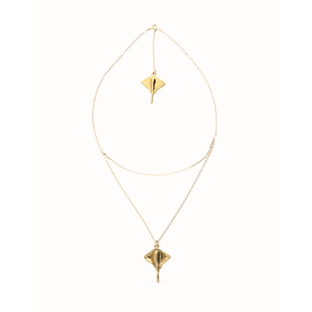 Colgante bañado en oro 18k con doble cadena y triángulo de cristal