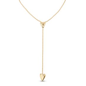 Cadena bañada en oro 18k con dos corazones, uno ajustable en el centro.
