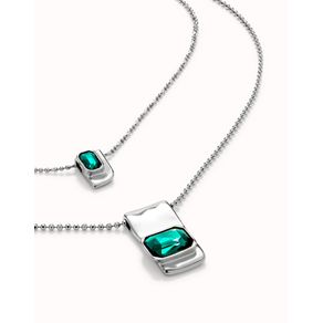 Collar doble de aleación de metales bañado en plata de ley con dos corazones