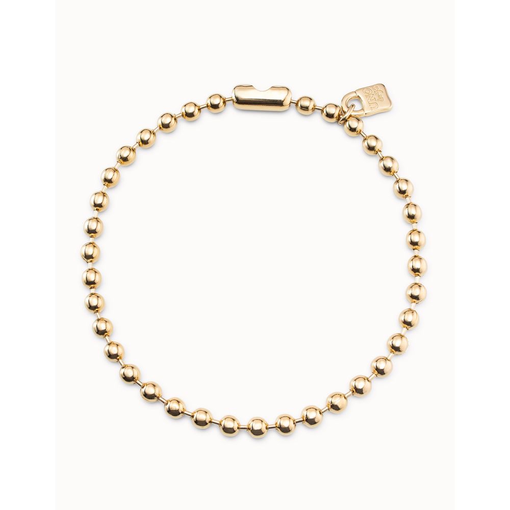 Cadena bañada oro de 18K con bolas continuas, cierre de mosquetón y cadena de extensión