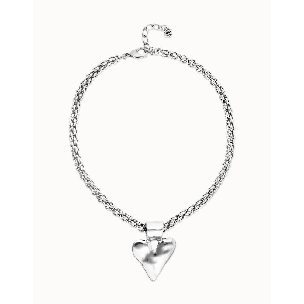 Collar con cadena gruesa y detalle de corazón grande bañados en plata de ley