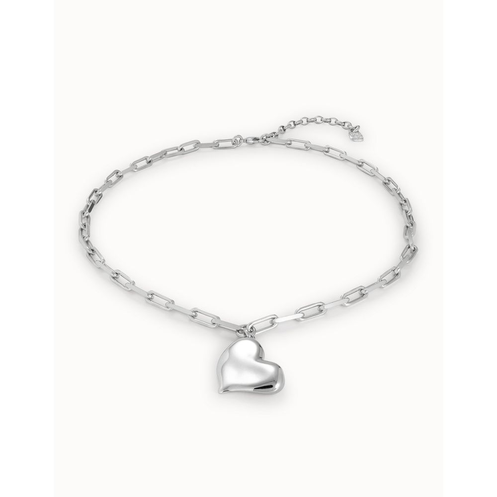 Collar corto bañado en plata de ley, cadena de eslabones medianos y corazón mediano
