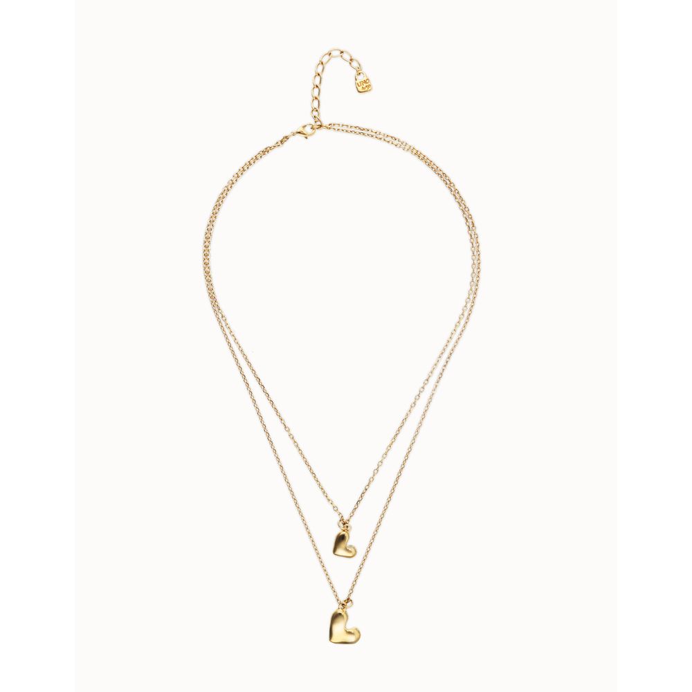 Collar doble de aleación de metales bañado en oro 18k con dos corazones