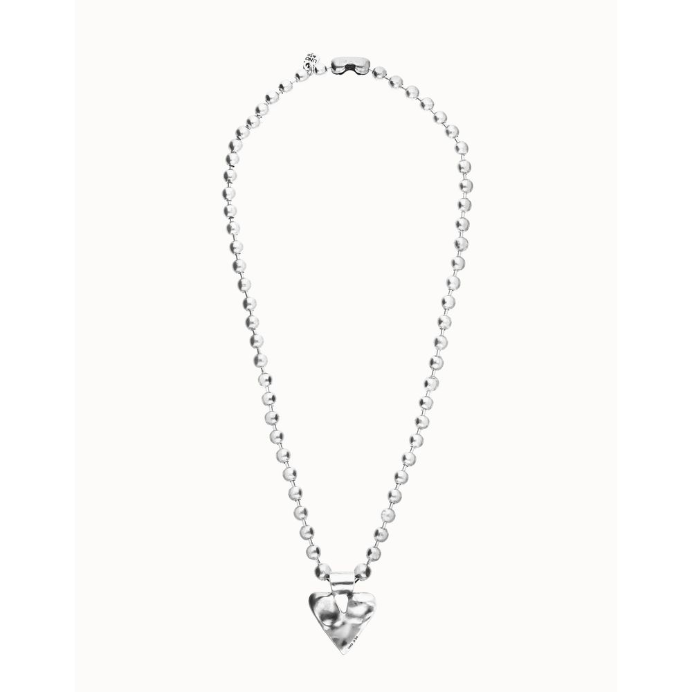 Collar largo de bolas de aleación de metales bañada en plata de ley con detalle de corazón