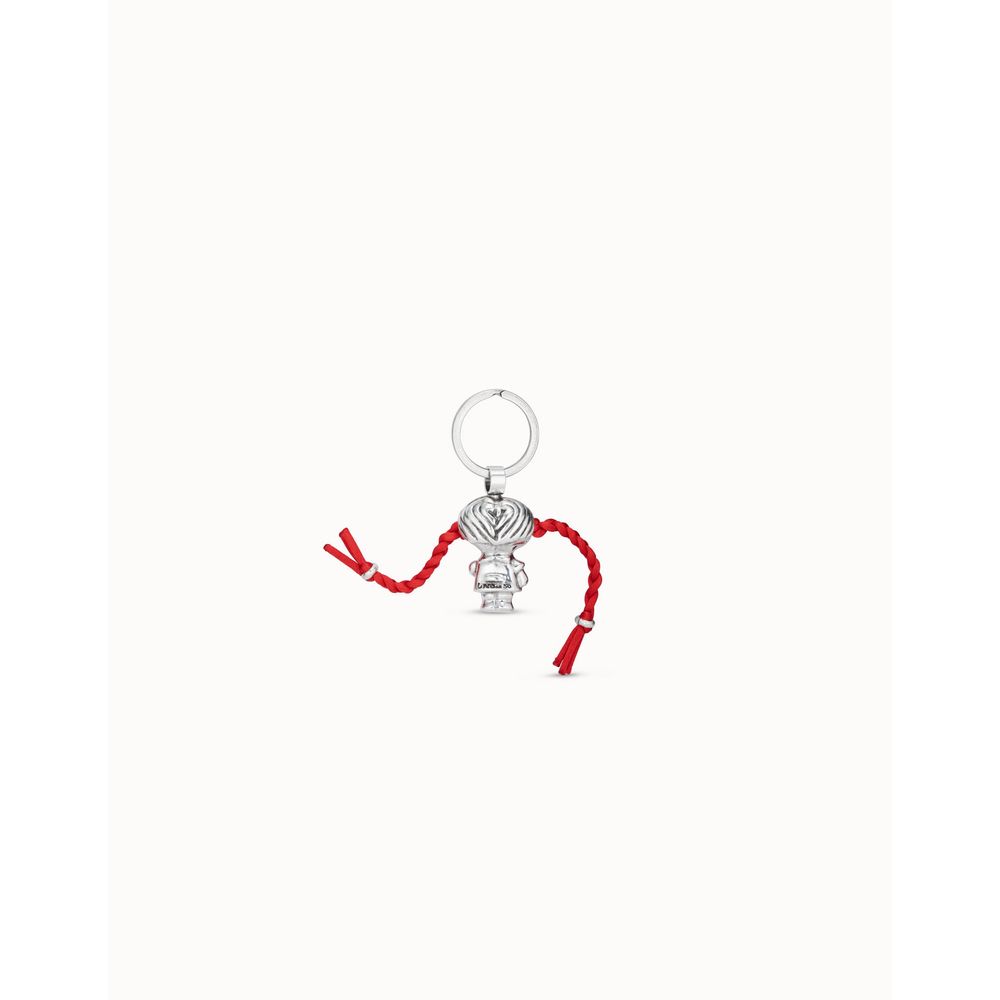 Llavero muñeca en plata 925 con cuero y cristal rojo