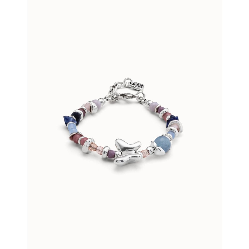 Pulsera elástica con libélula bañada en plata de ley con cristales azules