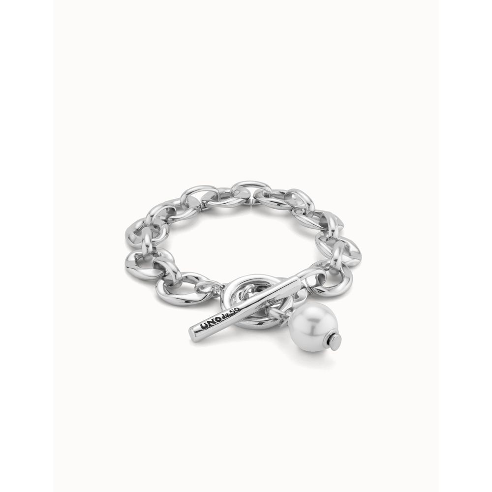 Pulsera bañada en plata de ley con eslabones y charm de perla