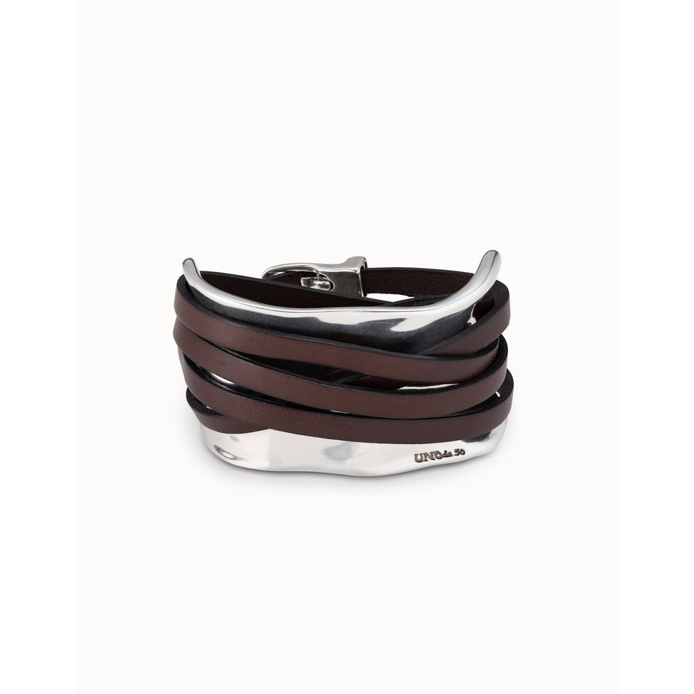 Pulsera bañada en plata de ley con tiras de cuero