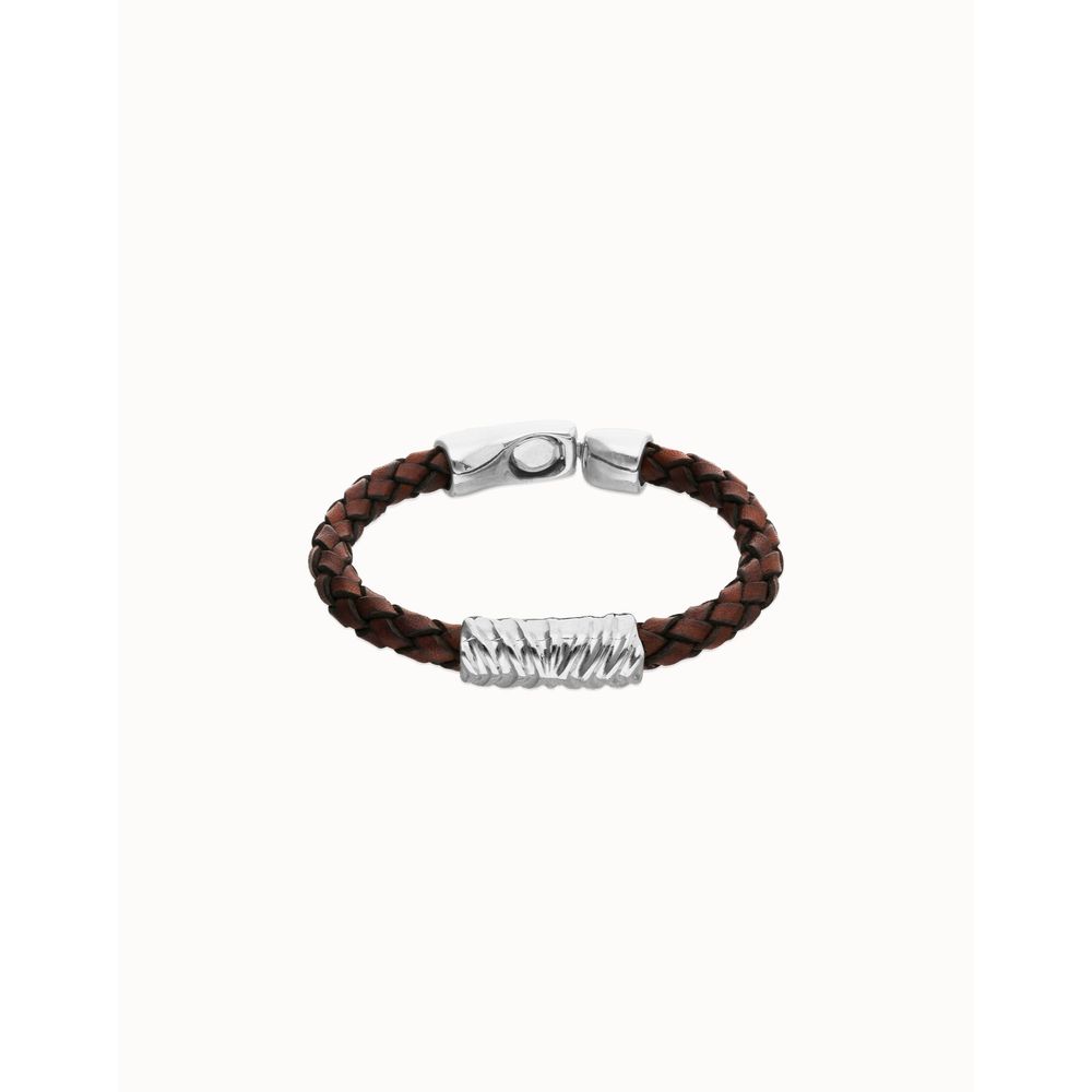 Pulsera de cuero trenzada color marrón bañada en plata de ley
