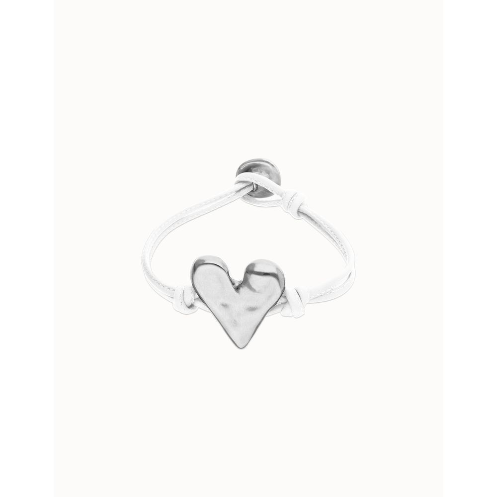 Pulsera de cuero blanco con detalle de corazón bañado en plata de ley