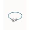 Pulsera de cuero azul de mujer con detalle de mosquetón entrelazado en plata de ley