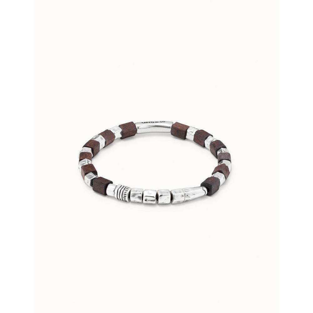 Pulsera elástica de cuentas en plata y madera