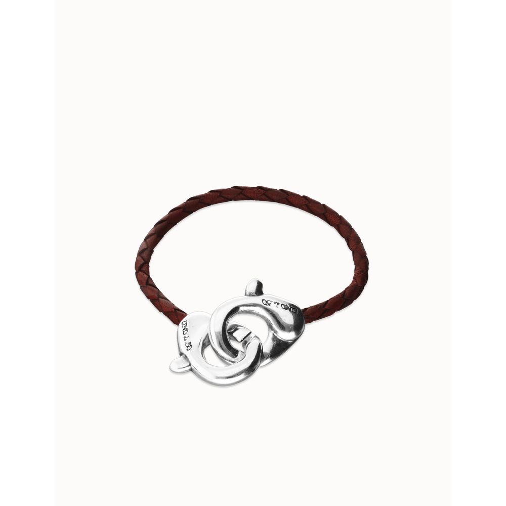 Pulsera de cuero marrón de hombre con detalle de mosquetón entrelazado