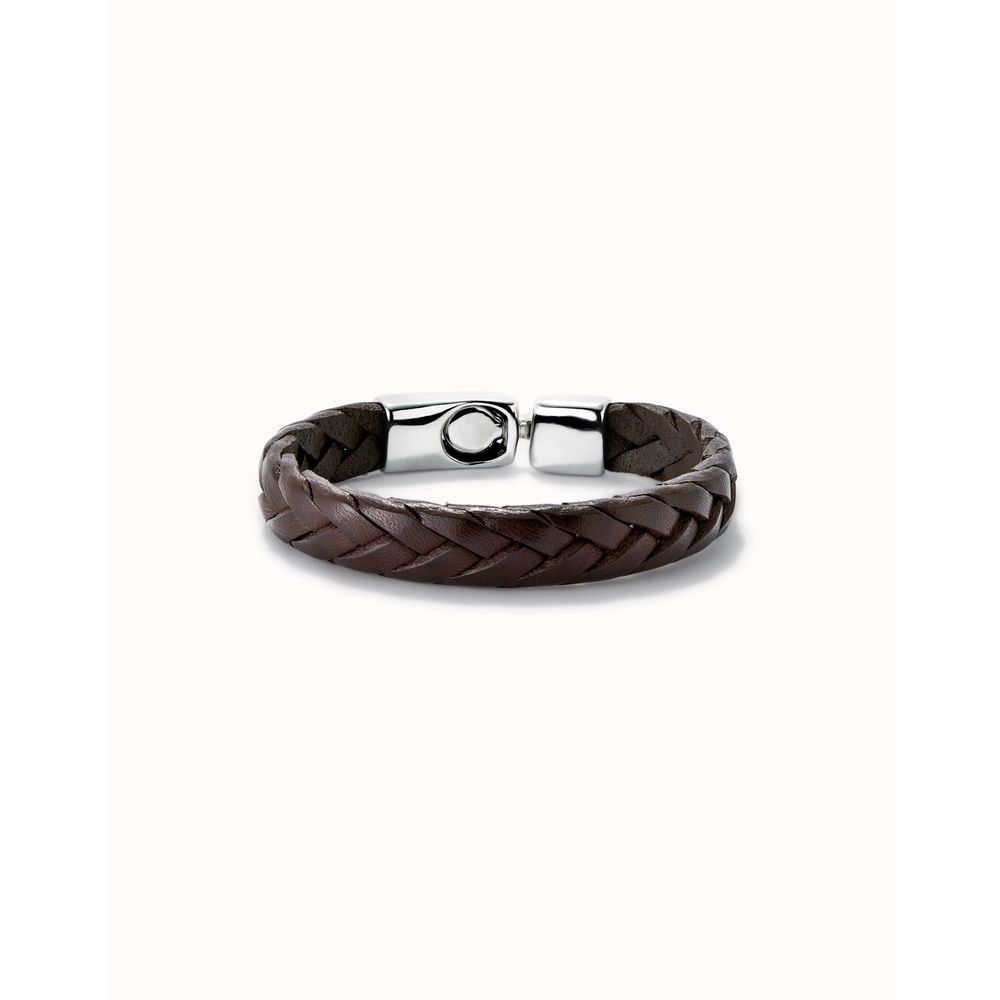 Pulsera de cuero trenzada color marrón bañada en plata de ley