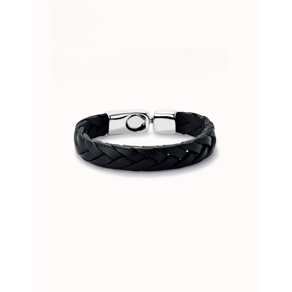 Pulsera de cuero trenzada color negro bañada en plata de ley