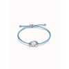 Pulsera de hilo azul con perla shell fornitura bañada en plata de ley