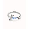 Pulsera elástica con libélula bañada en plata de ley con cristales azules