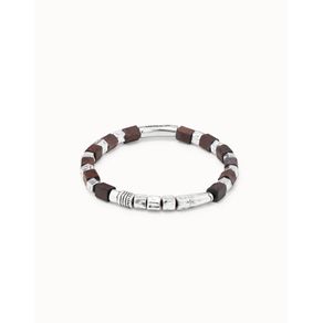 Pulsera de cuero con piezas bañadas en plata de ley y cuentas de madera