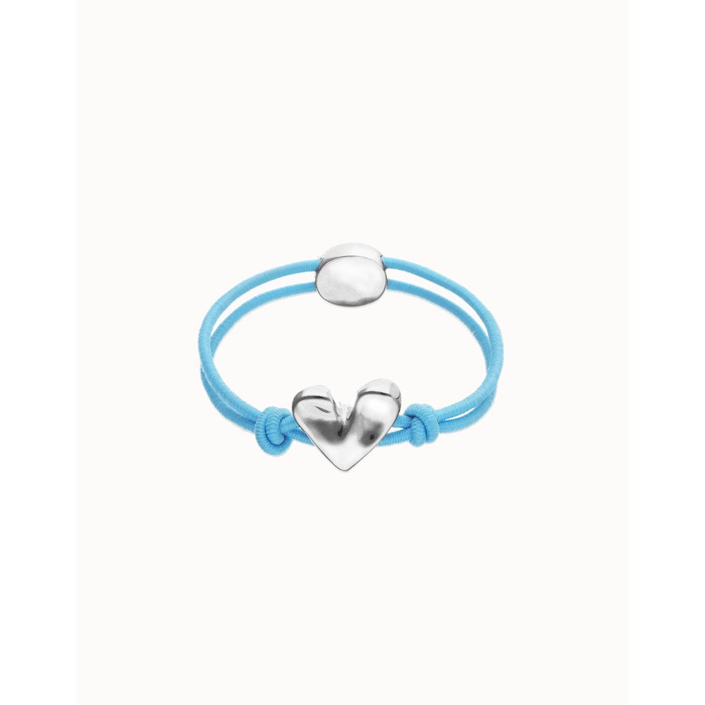 Pulsera de hilo elástico azul con corazón bañado en plata de ley