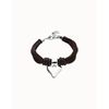 Pulsera mezcla de hilo efecto seda con cuero marrón y detalle de corazón plateado