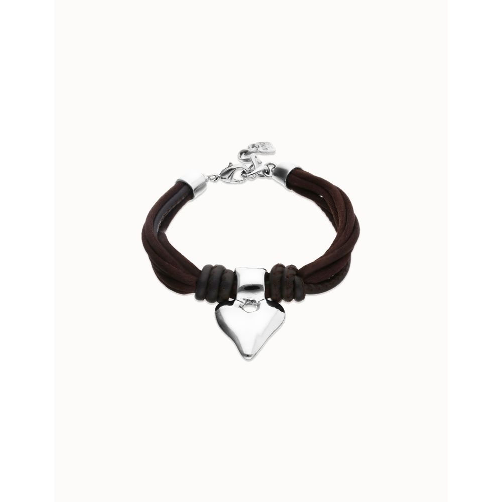 Pulsera de cuero marrón con detalle de corazón bañado en plata de ley