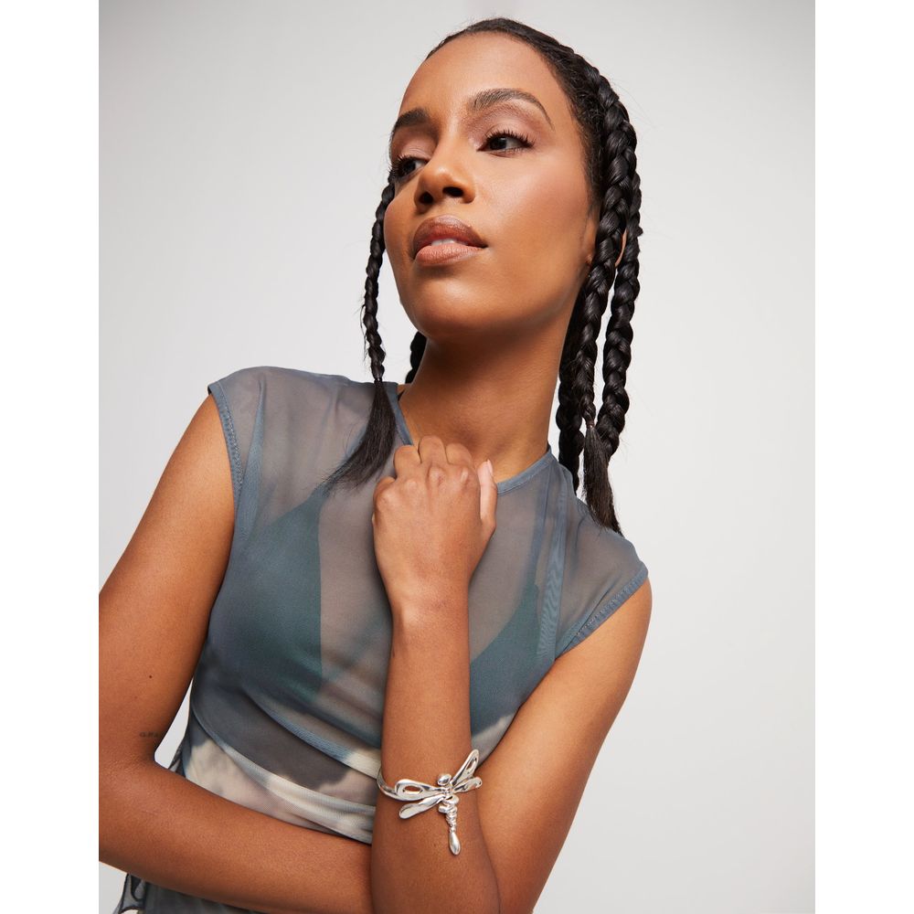 Pulsera bañada en plata de ley con forma de túbulo y muelle oculto