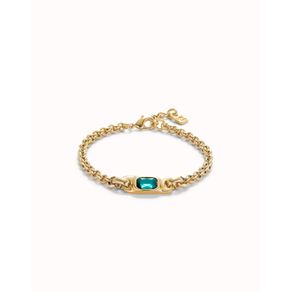 Pulsera de cadena bañada en oro 18k con cristal verde esmeralda