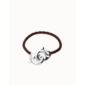 Pulsera semirígida bañada en plata de ley con cuero marrón